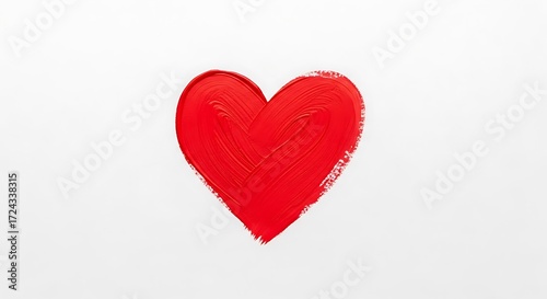 Red heart painted with brush strokes isolated on white background