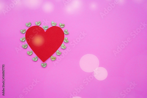 Red heart shape on abstract pink background in valentine's day love concept with sweet and romantic moment.