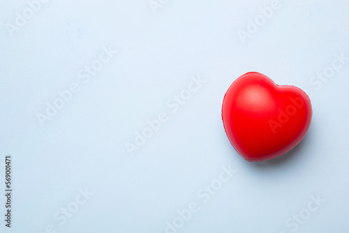 red heart shape on colored background. minimal concept top view with copy space