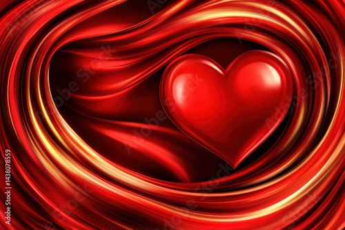 Red heart surrounded by flowing red fabric. A vibrant, romantic design