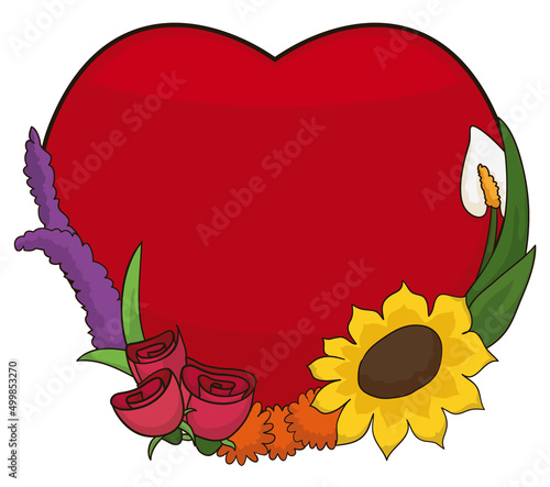 Red heart with beautiful floral decoration over white background, Vector illustration