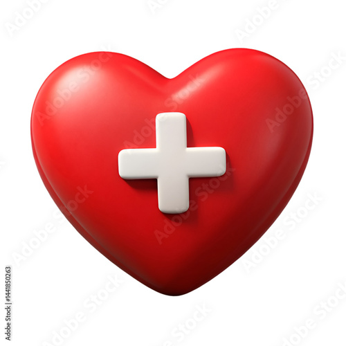 Red heart with white plus sign in center isolated on transparent background
