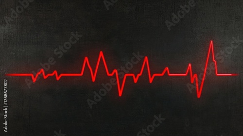 Red Heartbeat Line on Dark Background Representing Medical Monitoring, Vital Signs, Health Care, and Life Signs in a Minimalist Style