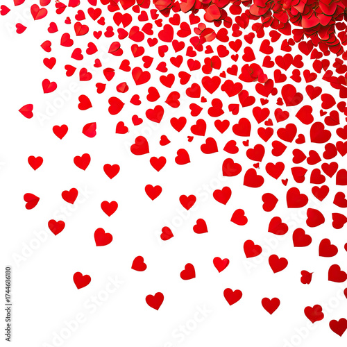 Red hearts falling in a corner on black background, soft lighting