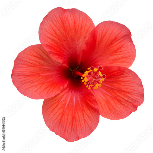 Red Hibiscus Flower with Orange Stamen on Transparent Background