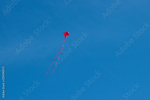 Red kite flying against a clear blue sky