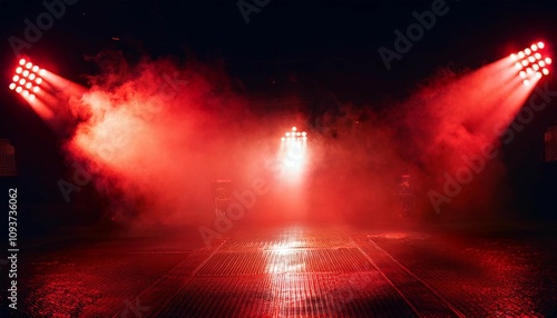 red light from lighting fixtures and heavy smoke demonstration horizontal photo