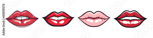 Red lips collection. Vector illustration of woman's lips Isolated on white background.