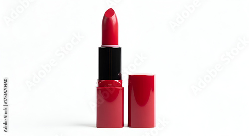 red lipstick standing on white background, elegant cosmetic product for beauty and makeup, glamour and fashion concept, minimal design of feminine accessory, luxury cosmetic brand image