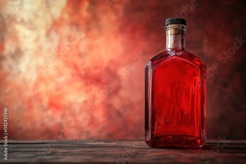 Red Liquid Filled Glass Bottle On Wooden Table