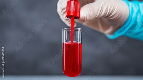 Red Liquid in Test Tube Science Lab Medical Research Gloved Hand