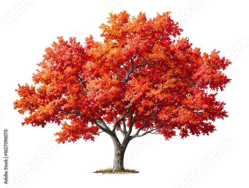 Red Maple Tree with Vibrant Red and Orange Autumn Foliage on Transparent Background