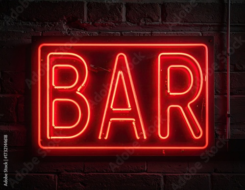 Red neon BAR sign on brick wall (1)