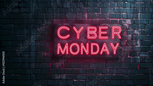 Red Neon 'CYBER MONDAY' Sign on a Brick Wall