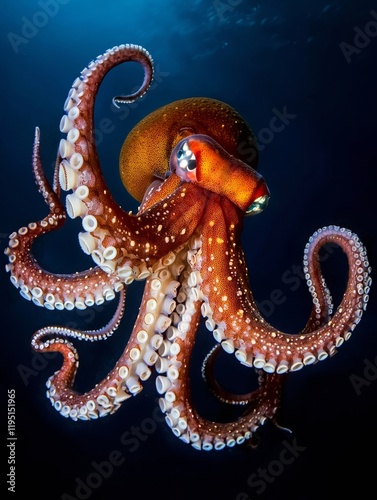 Red Octopus in Dark Ocean Waters