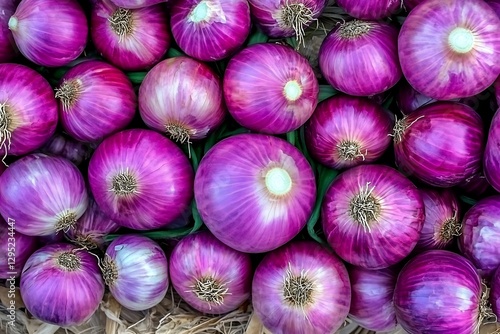 Red onions piled high at market