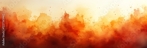 Red, orange, and yellow background with a watercolor painted texture that has a grunge effect, featuring an abstract representation of a hot sunrise or burning fire, suitable for a colorful banner or