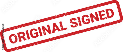 Red original signed rubber stamp with grunge effect for legal documents
