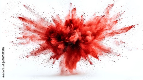 Red paint powder festival explosion portrayed on a transparent background, isolated