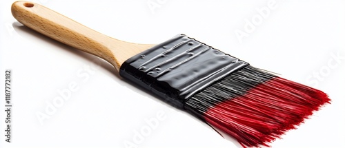 Red paintbrush, wood handle, white background, DIY project