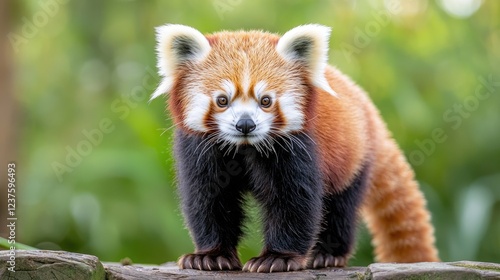 Red panda cub, forest habitat, curious gaze, nature wildlife