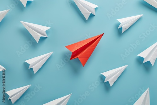 Red Paper Airplane Leading the Way
