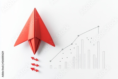 Red paper plane represents business strategy and growth with graph on white background focused on success and innovation. Generative AI