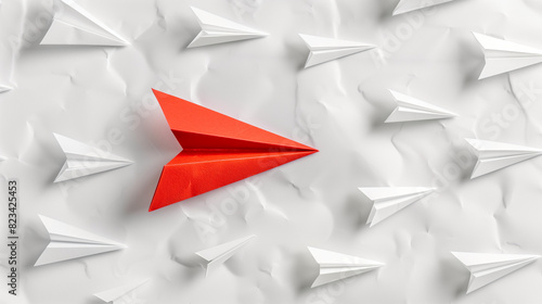 Red paper plane standing out from white planes, business success leadership