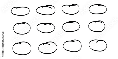 red pen hand drawn doodle marks, red circle and oval stroke set. Outline red drawing line clipart symbol
