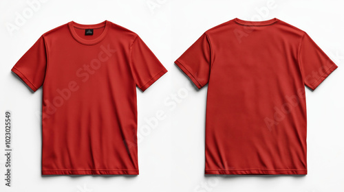 Red plain t-shirt front and back view on white background, casual short-sleeve garments