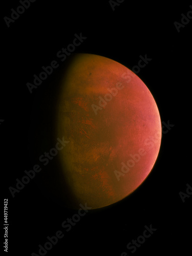 Red planet in space with stars, cosmic landscape, surface of the planet, mars isolated.
