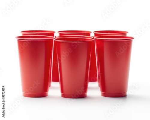 Red Plastic Party Cups Set, Perfect for Celebrations, Advertising and Alcohol Advertisement on a White Background