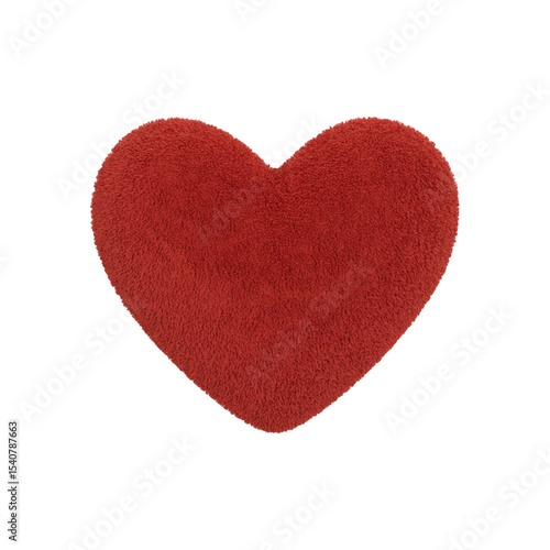 Red plush heart isolated on transparent background. Cut out png