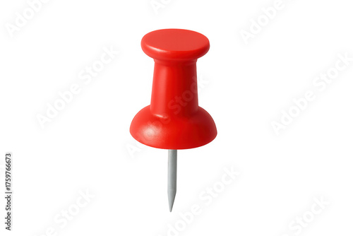 Red pushpin creating a focus point, tacking important notes, office supply isolated on transparent background