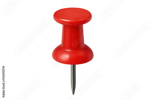Red pushpin presenting an essential office supply item for pinning notices and reminders. Transparent background