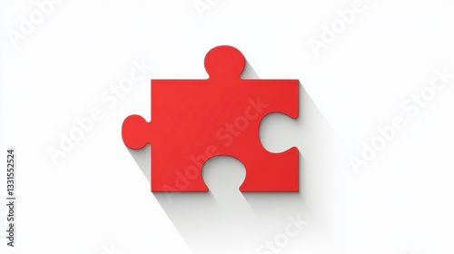 Red puzzle piece close-up shot on white background for creative concept development minimalist design