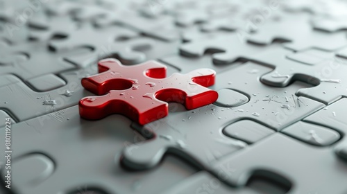 Red Puzzle Piece on a Grey Background