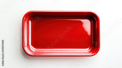 Red rectangular dish empty serving tray glossy enamelware