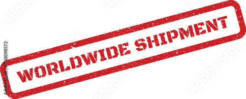 Red rectangular grunge rubber stamp signifying global delivery for e commerce, logistics, and international package services