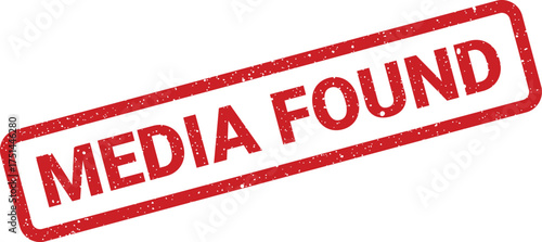 Red rectangular rubber stamp showing MEDIA FOUND text, indicating successful retrieval or location of content