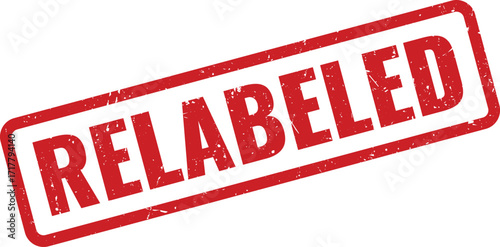 Red Relabeled Grunge Rubber Stamp on White Background Indicating Label Replaced