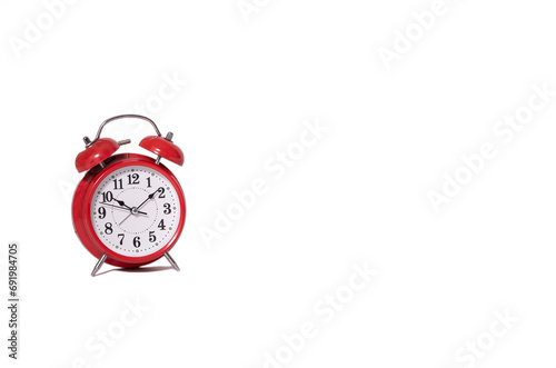 red retro alarm clock on a white background