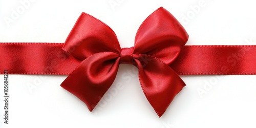 Red Ribbon Bow on White Background