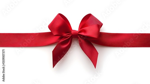 Red ribbon on white background. Black ribbon. Ribbon for Christmas gift, valentines day, birthday wrapping.