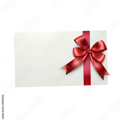 Red ribbon with bow on white gift card isolated mockup template on transparent background for festive promotion sale or agent, business set up and marketing advertising design element