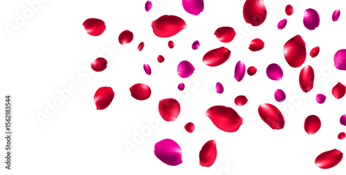 Red Rose Falling Vector Transparent Background. Flying Peach Banner. Delicate Flower Beauty Backdrop.