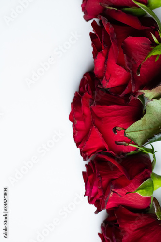 Red roses on a white background close-up. Plenty of room for text.