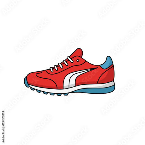 Red running shoe illustration, athletic footwear design, sport equipment, side view
