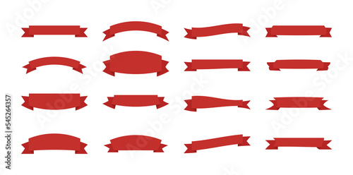 Red sale ribbon and simple banner label concept flat illustration.
