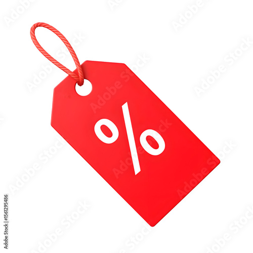 Red sale tag with percentage symbol isolated on transparent background